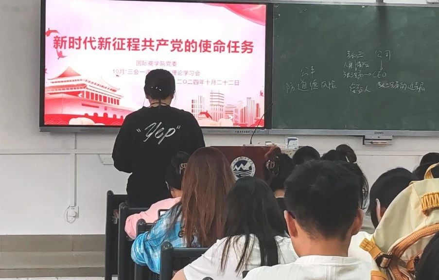 10月22日中午,为坚持中国式现代化的发展理念,加强党员的使命感和责任感,国际商学院组织召开专题学习会,学习《习近平:新时代新征程中国共产党的使命任务》,全体师生党员参加。