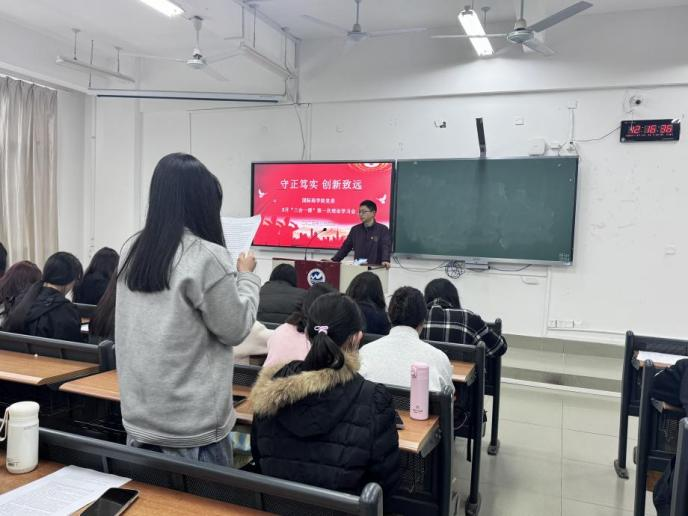 3月4日中午,为深化学习马克思主义文化理论,传承发展中华优秀传统文化。国际商学院组织召开专题学习会,学习《习近平:必须守正创新》,全体师生党员参加。