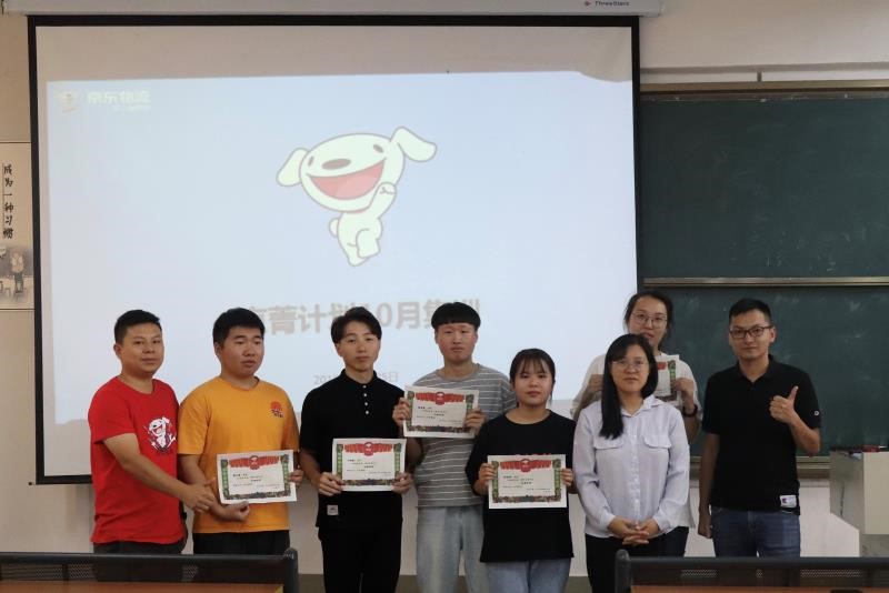 10月25日下午,福州外语外贸学院-京东集团智慧物流班阶段学习汇报会在教3101举行。京东物流福建省分公司人力资源部经理桂保成、人资行政部福州园区BP黄紫金、福州仓库经理王世杰、经管学院副院长刘丹、团委副书记郭剑航、物流系教师王承娜、辅导员马潇菲、“京菁计划”全体学员参加活动。