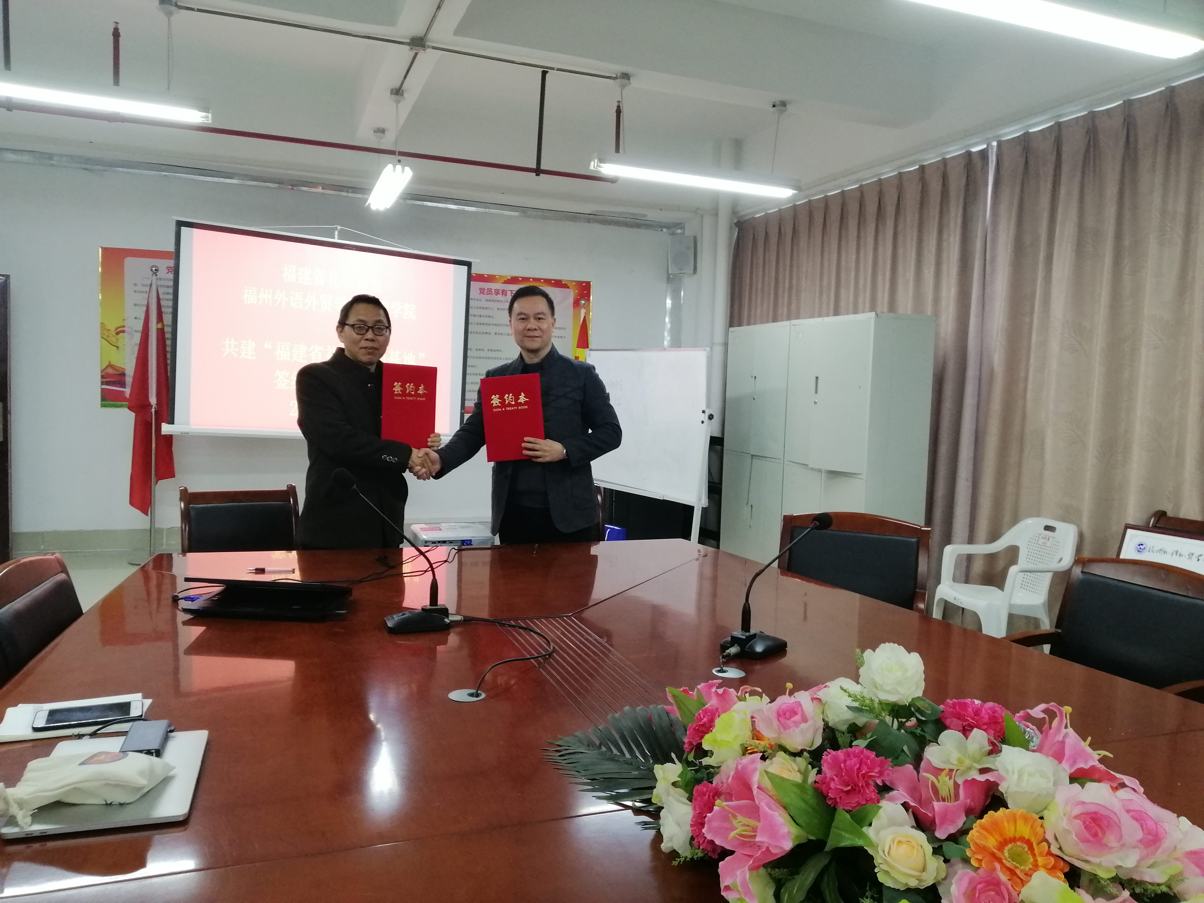 2019年12月10日上午,福建省礼仪协会与我院共建“福建省礼仪培训基地”举行签约暨授牌仪式在院部会议室举行。福建省礼仪协会副会长郑耀星教授、福建省文明礼仪培训基地办公室主任、福建省礼仪协会副会长兼秘书长黄利天、副秘书长廖晓燕、办公室主任谢芬;经管学院陈忠院长、刘丹副院长、林锋书记、国际经济与贸易系主任王华玲副教授和部分教师共同出席了签约仪式。