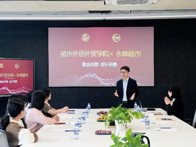 随后,师生们又与永辉超市闽赣省区人力负责人陈铭灿和招聘负责人王建姬进行深度交流。据永辉方面统计,我校历年均有毕业生加入永辉,目前任店长、经理、主管级别等在职毕业生20余人。永辉表达了对福州外语外贸学院优秀校友们能力的肯定和前往校招的意愿。双方通过恳切的交谈互相传达合作意向,探讨未来校企深度合作的可能性。