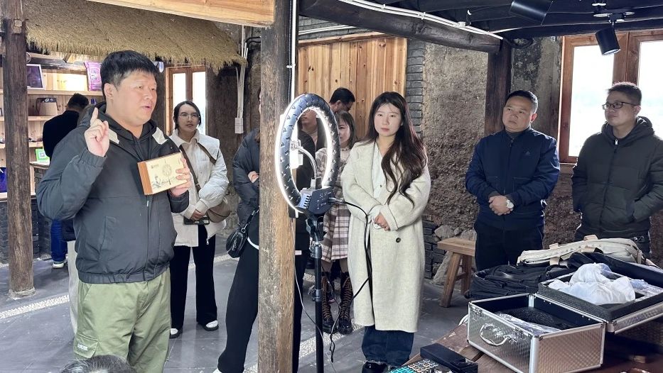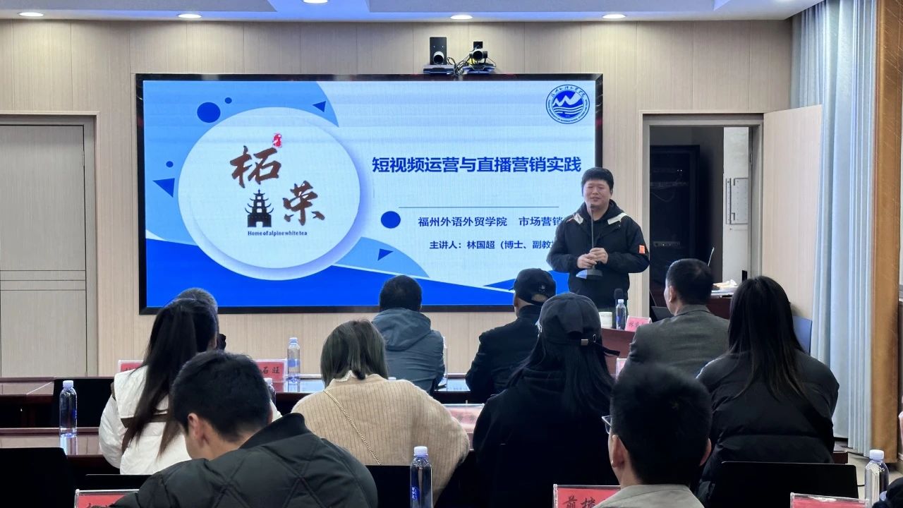 在针对当地农产品销售人员的《短视频运营与直播营销实践》课堂上,林国超副教授结合自身经验,对认识短视频与直播、短视频策划与执行、直播策划与执行、短视频与直播营销复盘等知识进行了全面分享,并将直播间设在了乡村,手把手地教会学员农产品直播、乡村旅游营销等实际操作技能。