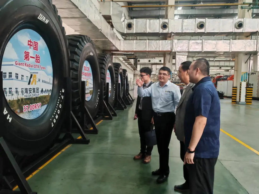 海安橡胶集团股份公司(以下简称”海安橡胶”)人力资源副总监马自强热情接待,并带领参观集团炼胶车间、预备车间、成型车间、硫化车间,介绍了海安橡胶生产巨型全钢工程机械子午线轮胎的研发历程以及对我国矿用轮胎行业的重要意义、公司的业务情况等,让全体来访老师对海安橡胶有了充分的了解。