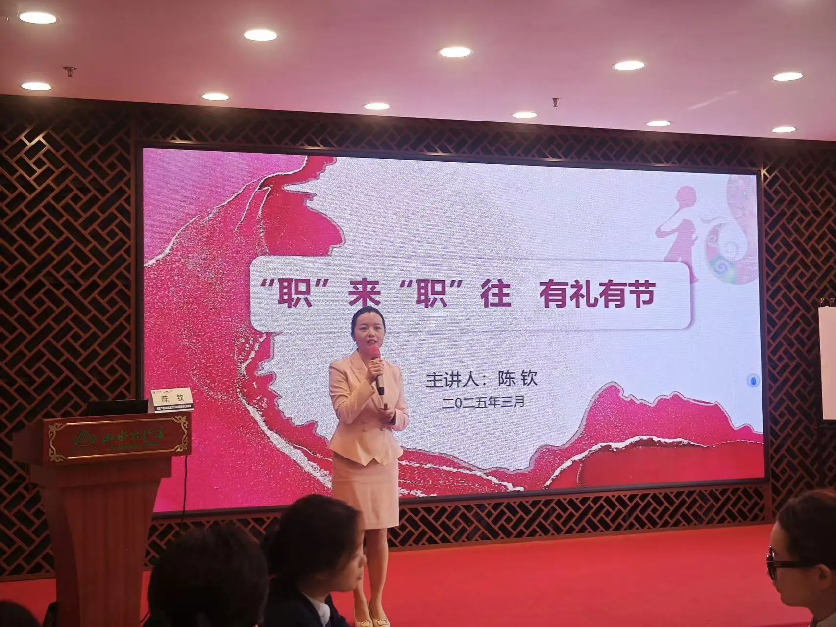 在为期一天的沉浸式培训中,陈钦化身"礼仪雕琢师",从职业形象多维体系建构、对客接待情境应对、会议服务流程优化、中式宴请礼序解码等模块展开系统培训。以理论为明镜正衣冠,用案例为棱镜析得失,让实践为明镜鉴成长,使参训学员在"礼仪体检-标准重塑-场景复现"的闭环中完成服务升级。