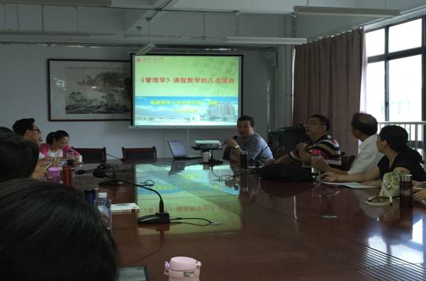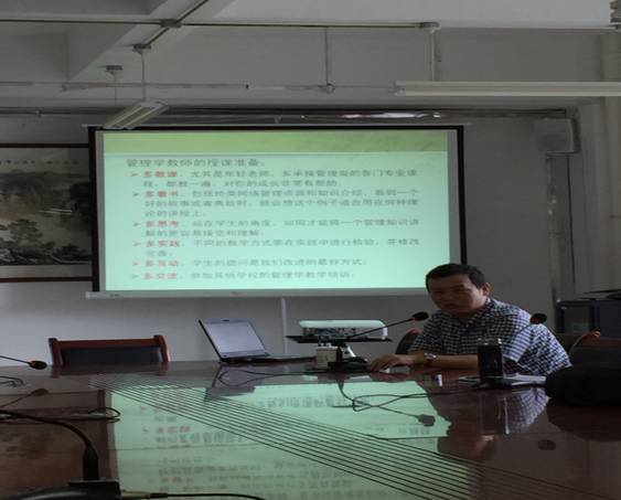 为深入市场营销系开元网页版《管理学》课程教学内容和方法的了解和掌握,促进工作经验的交流与学习,更好地开展《管理学》教学工作,我系诚邀福建师范大学经济学院院长助理章竟教授于2015年9月16日下午在行政B楼706为全体教职工举办了一场名为“《管理学》课程教学的几点体会”的研讨会。