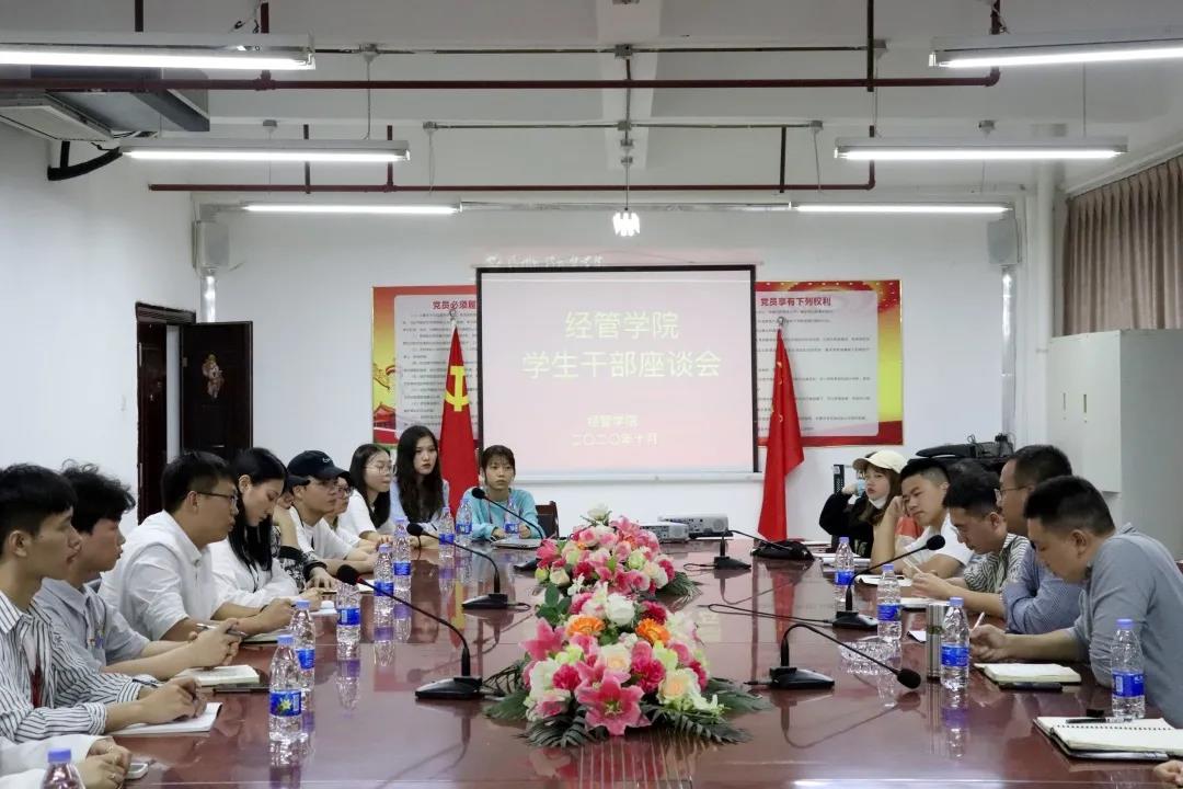 为了进一步加强学生干部队伍建设,深入了解学生干部工作现状,强化思想引领,不断提升学生干部队伍的工作水平与质量,经管学院于2020年10月7日召开新学期学生干部座谈会。经管学院副院长吴培煌、经管学院办公室副主任、团委书记熊睿卿、经管学院党委组织委员王欣、经管学院团委常务副书记郭剑航出席会议,团委学生会、学生党员工作站主要学生干部、辅导员助理代表参加会议。