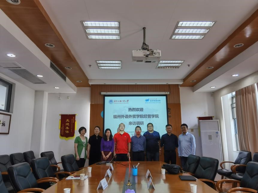 4月14日,董事长助理、经管学院(国际商学院)院长陈忠教授一行赴广东外语外贸大学调研交流。广东外语外贸大学经济贸易学院院长张建武教授、副院长唐静教授、国际经济与贸易系主任许月丽教授及教师代表参加了此次研讨会。会议由张建武院长主持。