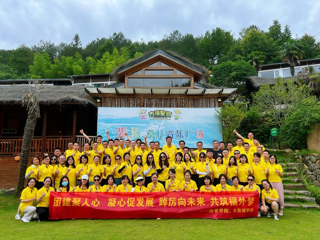 为提高经管学院、大数据学院和各中心教职员工的凝聚力,加强教职工之间的交流与沟通,丰富教职工的业余文化生活,培养顽强奋斗、勇于拼搏的优良品质,7月5-7日,经管学院、大数据学院、各中心一行70余人开展了以“团建聚人心,凝心促发展,踔厉向未来,共筑福外梦”为主题的团建拓展活动。