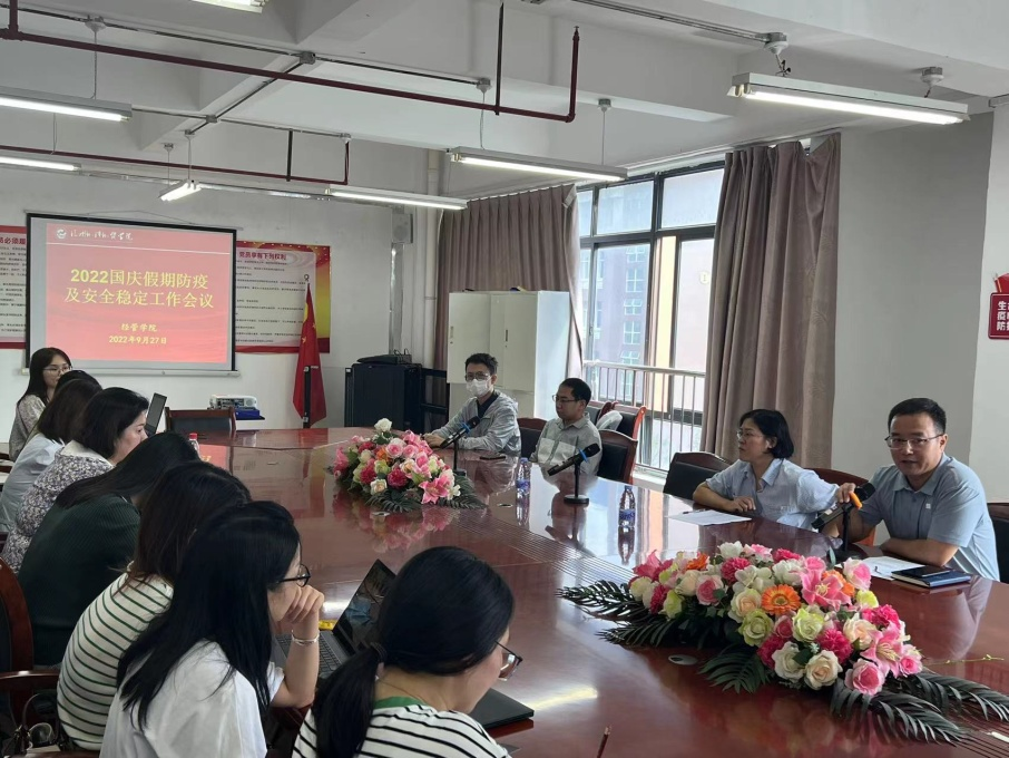 会上,吴培煌首先传达了上级开元网页版做好假期疫情防控工作的会议精神,并就学院国庆假期的疫情防控工作进行部署。他强调,要清醒认识全国、全省疫情防控形势,特别是教育系统防疫形势的严峻性、复杂性和不确定性,充分认识国庆假期疫情输入和传播风险加大的压力挑战,坚决克服盲目乐观心态,坚决杜绝麻痹松懈和侥幸心理,绷紧疫情防控这根弦,织密织牢学院疫情防控这张网;要严格按照“快、重、严、静、爱”的原则,抓紧抓好抓实校园防疫工作;要把筑牢外防输入防线作为学院当前疫情防控的重中之重。倡导全体师生就地过节,严格落实国庆期间请假制度,原则上坚持“非必要不离榕”,“非必要不出省”。