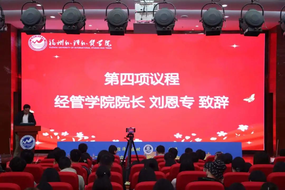 最后,刘恩专院长致辞,他指出面对数字经济带来的新商业模式的蓬勃发展,需要“新商科”人才。学院商科文化节正是为了培养提升学生的商科素养而举办。他也借用王国维《人间词话》中的人生三境界对全体同学和老师提出了希望和要求,希望所有同学能走走出现有的舒适圈,捕捉前沿信息,掌握商科知识,培养商科思维;希望全体同学能够走出宿舍,走进赛场,登上舞台,锻炼商科技能,塑造商科形象,提升综合素养;希望全体教师能够为学生的“成长、成才和成功”铺路搭桥,发挥好协同育人作用;希望全体同学能怀揣梦想,勇于挑战,敢于创新,利用好商科文化节这个平台一展身手。最后,他要求全体师生要积极参与到商科文化节这场盛会中,共同烹制经管人的学术和文化盛宴。