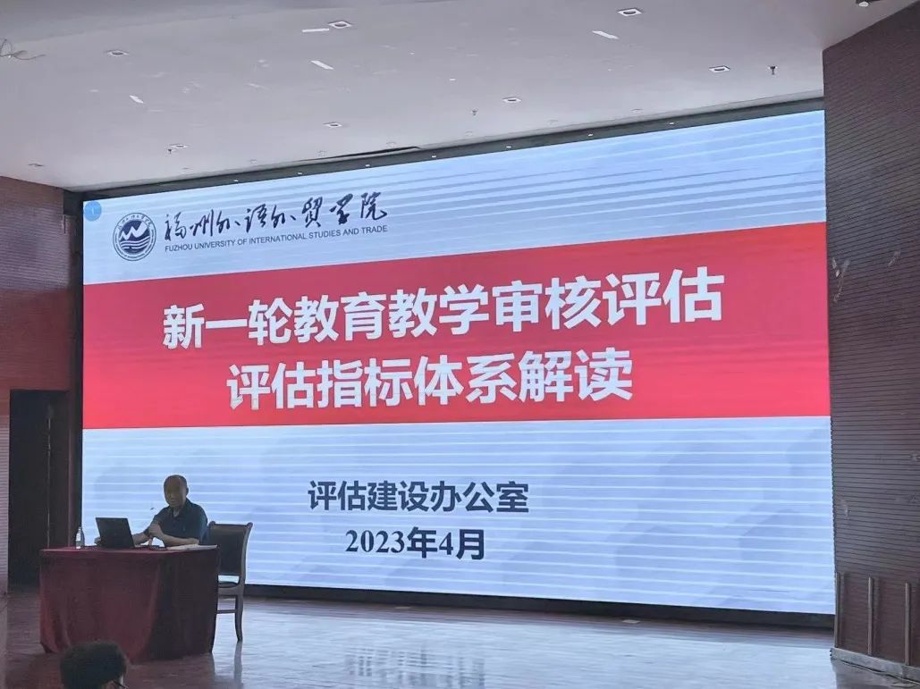 本次动员大会邀请校评估建设办公室主任吴承强就新一轮本科教育教学审核评估指标体系工作进行了详细解读和指导。首先他就新一轮审核评估的五个新变化、内容特点、工作目标等方面进行讲解。他指出,新一轮审核评估在立德树人的根本任务等方面进行重点考察;并对评估指标体系中7个一级指标,27个二级指标,78个审核重点进行了详细解读。
