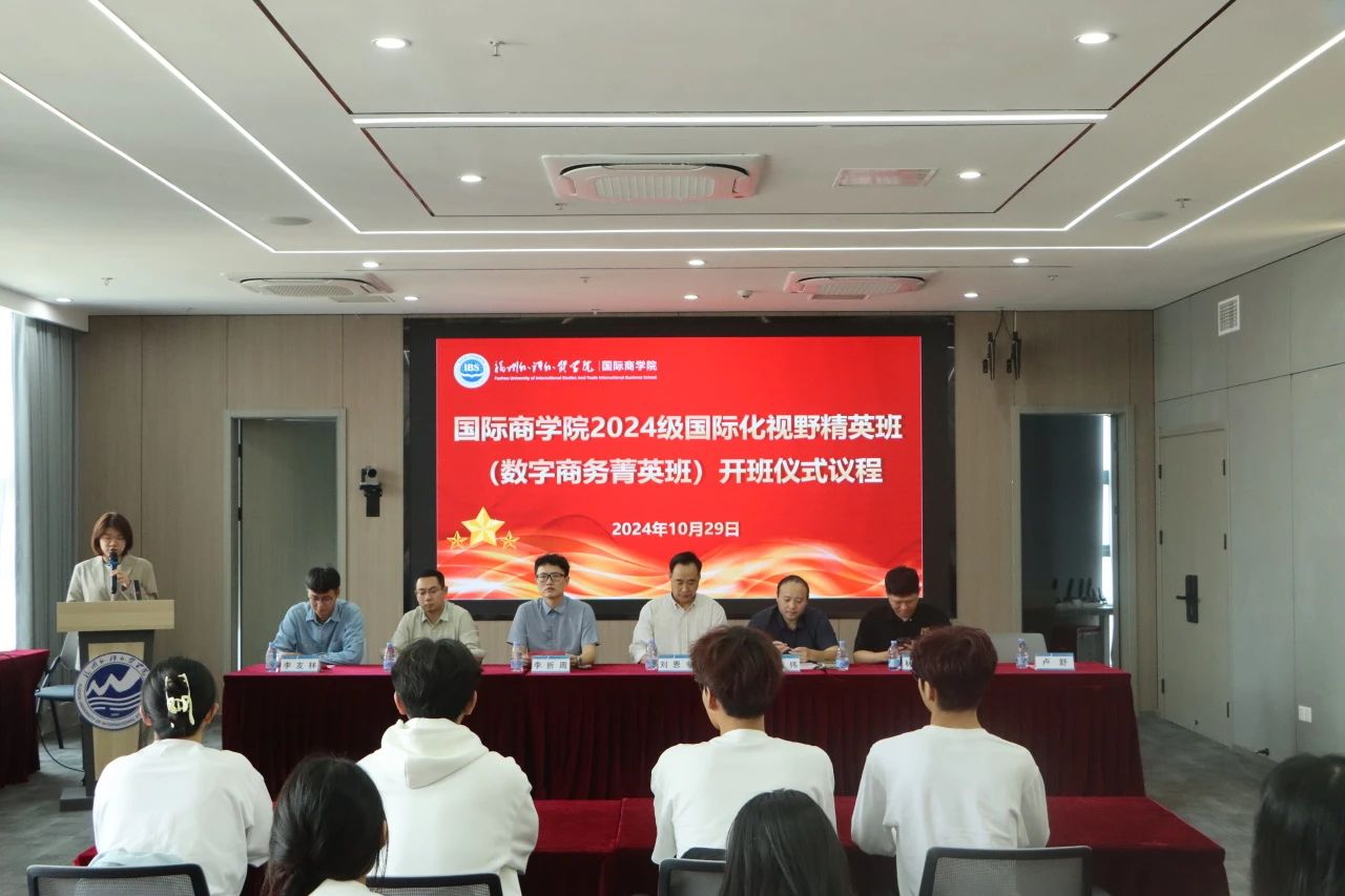 10月29日,国际商学院于英特大厦1707举行2024级国际化视野精英班(数字商务菁英班)开班仪式。学院院长刘恩专,副院长、分党委书记陈宏伟,院长助理李折周、林国超,各系主任、办公室负责同志、辅导员、2023级及2024级数字商务菁英班全体同学参加了本次开班仪式。仪式由林竞文主持。