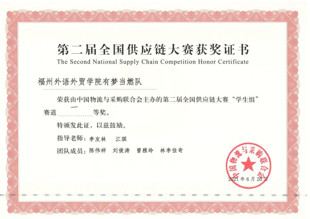 第二届全国供应链大赛全国一等奖(2021)
