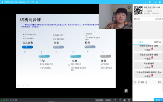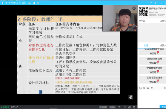 6月10日下午,我校教师教学培训师林国超讲师开展了主题为《课程实践教学设计》的专题培训活动,活动采用了腾讯课堂线上直播的方式,近50位感兴趣的老师参加了活动。
