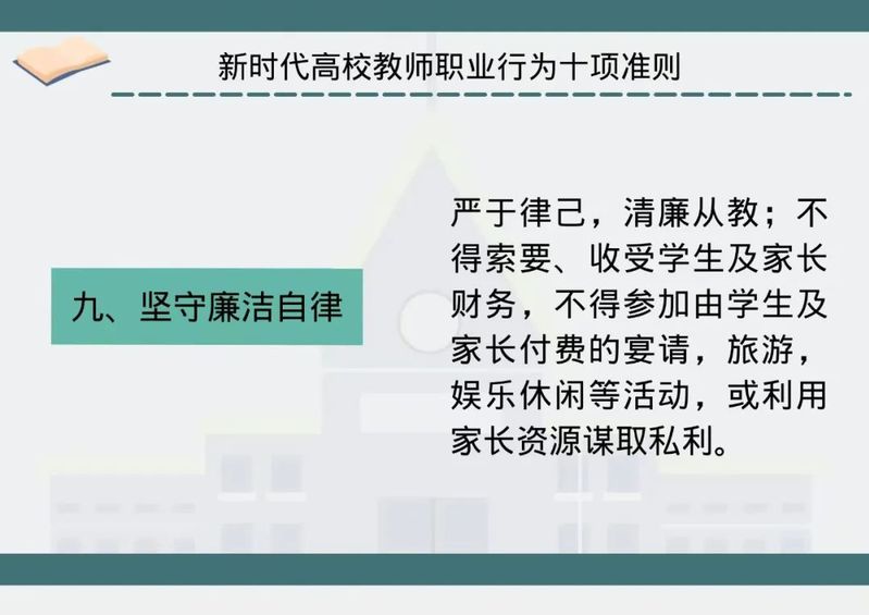 为贯彻落实《中共教育部党组开元网页版完善高校教师思想政治和师德师风建设工作体制机制的指导意见》,不断加强《新时代高校教师职业行为十项准则》(以下简称“十项准则”)宣传教育,切实增强广大教师践行职业行为准则的思想自觉和行动自觉。教师工作部特推出师德教育之警示案例专栏,通过梳理教育部公开曝光的违反教师职业行为十项准则典型案例,以案明理,以案释规,帮助大家更加准确地理解把握“十项准则”,树牢师德规范,坚守行为底线,做以德立身、以德立学、以德施教、以德育德的楷模。