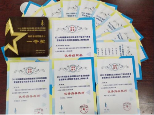 近日,2020年福建省运动健身进万家系列赛事暨福建省全民健身首届线上跳绳比赛顺利举行。我校与厦门大学并列获得高校甲组团体总分一等奖,我校荣获“优秀组织奖”,领队、教练员董海洋、童智锦、刘剑雪荣获“优秀...