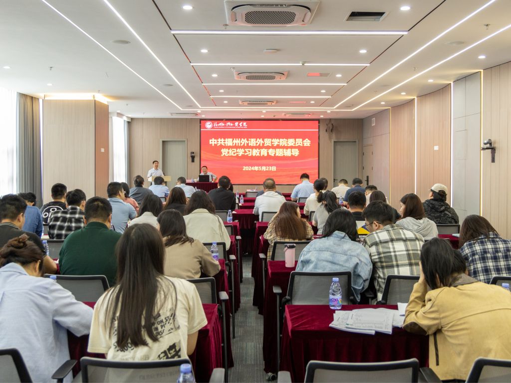 5月23日,福州外语外贸学院党委党纪学习教育读书班交流研讨会暨党委理论学习中心组学习(扩大)会举行,邀请中共福建省委省直工委讲师团特聘教授、福建省首批“新时代宣讲师”黄跃舟作《党的纪律是管党治党的“戒...