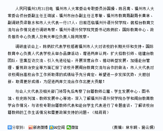 人民网报道:福州市人大常委会侨台委赴福州外语外...