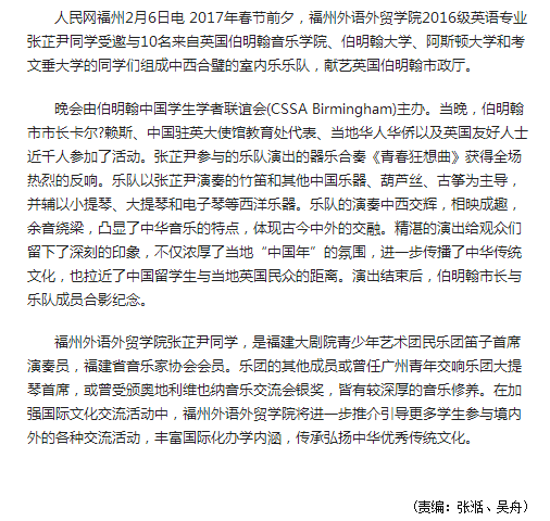 人民网报道:福州外语外贸学院学子受邀参演2017年...