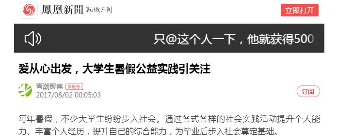 凤凰新闻报道:我校大学生暑假公益实践活动