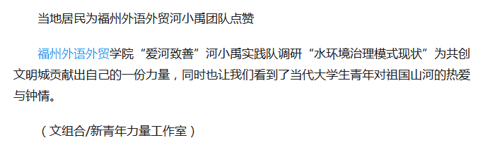 搜狐网报道:福州外语外贸学院学子:赴仓山巡江河...