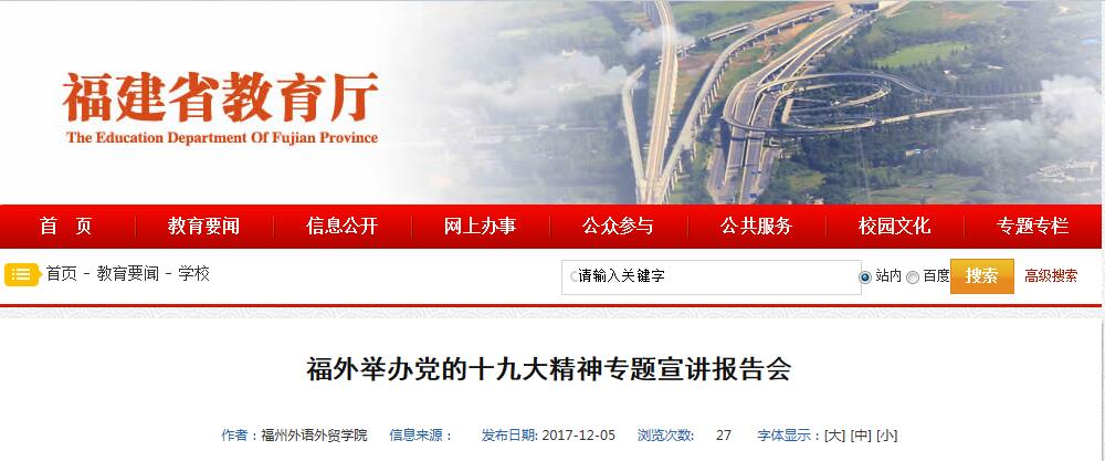 福建省教育厅网站报道:福外举办党的十九大精神专...