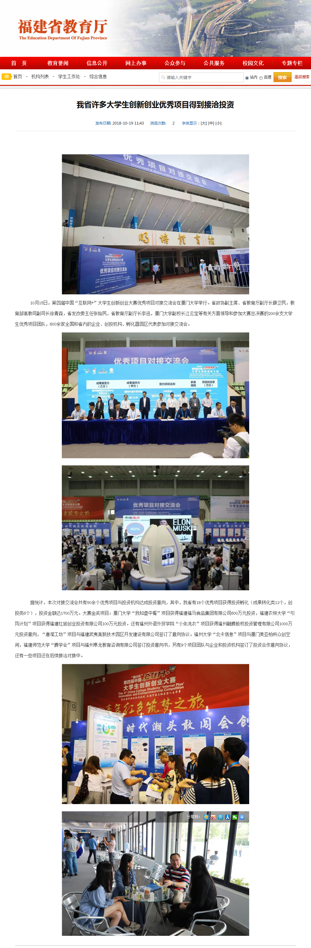 省教育厅网站报道:福外2个大学生创新创业优秀项目...