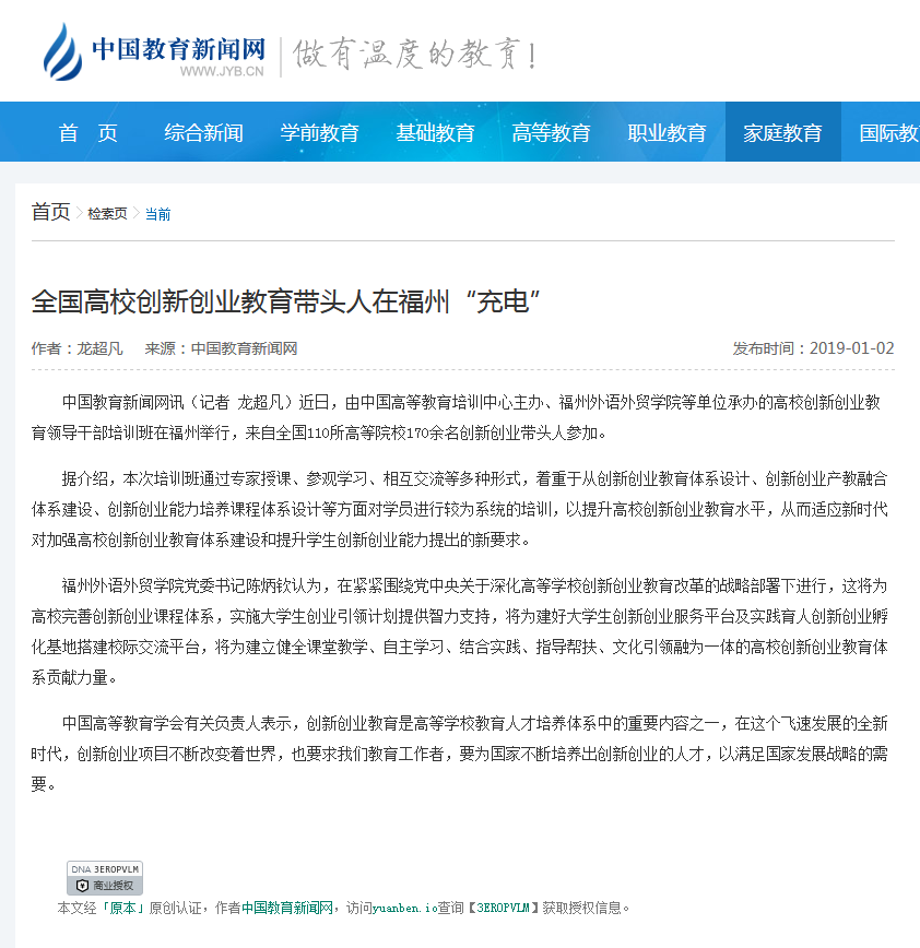 中国网报道:高校创新创业教育领导干部培训班在福...