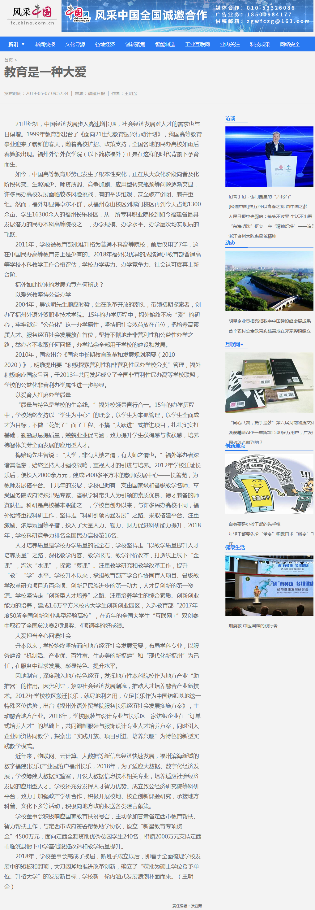 福建日报报道:教育是一种大爱——福州外语外贸学...