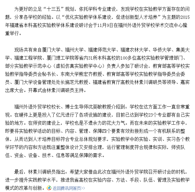 腾讯大闽网报道:2015年福建省本科高校实验教学体...