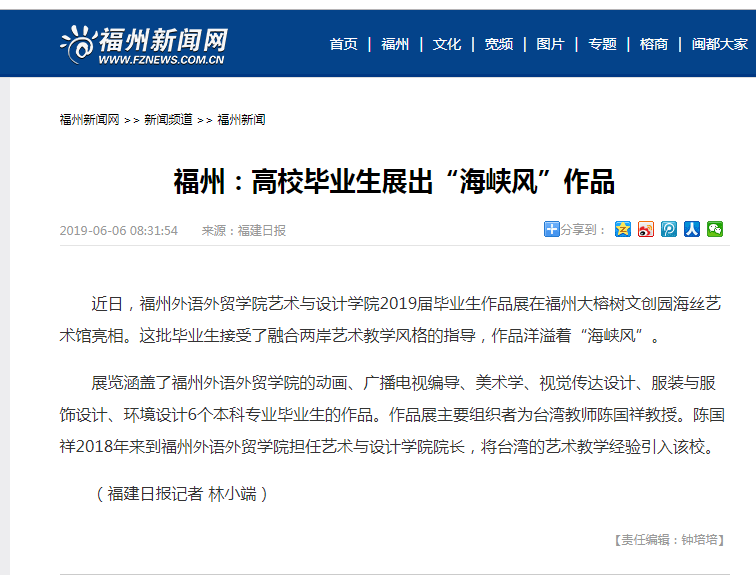 福建日报报道:福州外语外贸学院展出“海峡风”作品
