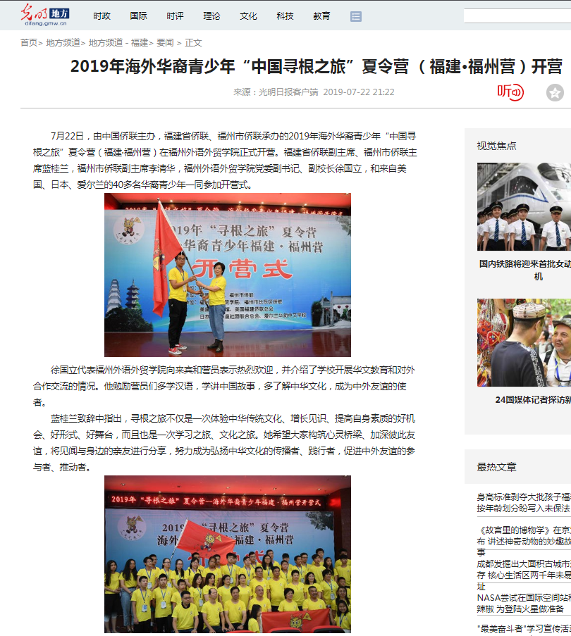 光明网报道:2019年海外华裔青少年“中国寻根之旅...