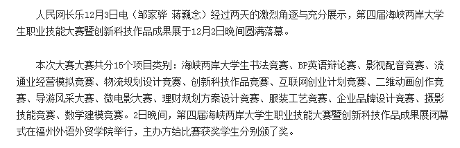 中国青年网报道:第四届海峡两岸大学生职业技能大...