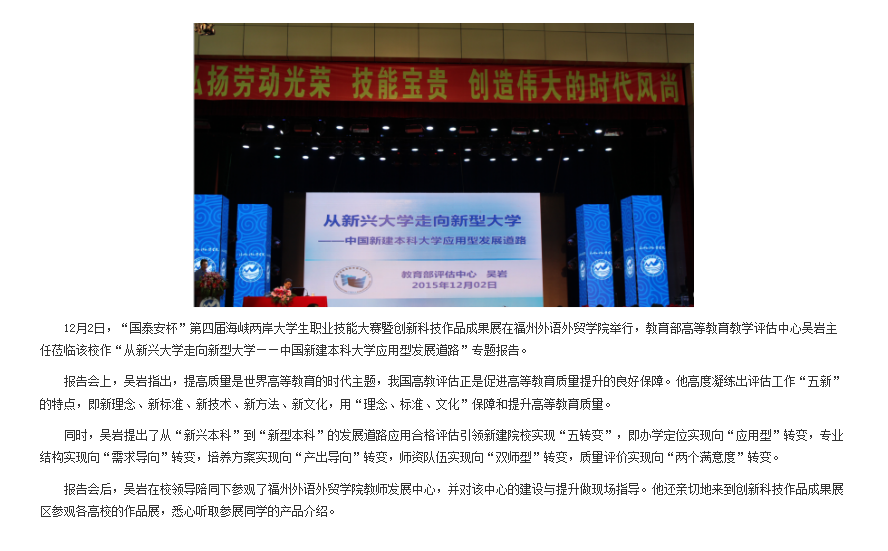省教育厅网站报道:两岸大学生职业技能大赛举行
