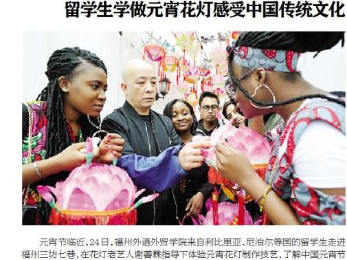 东南快报报道:留学生学做元宵花灯感受中国传统文化