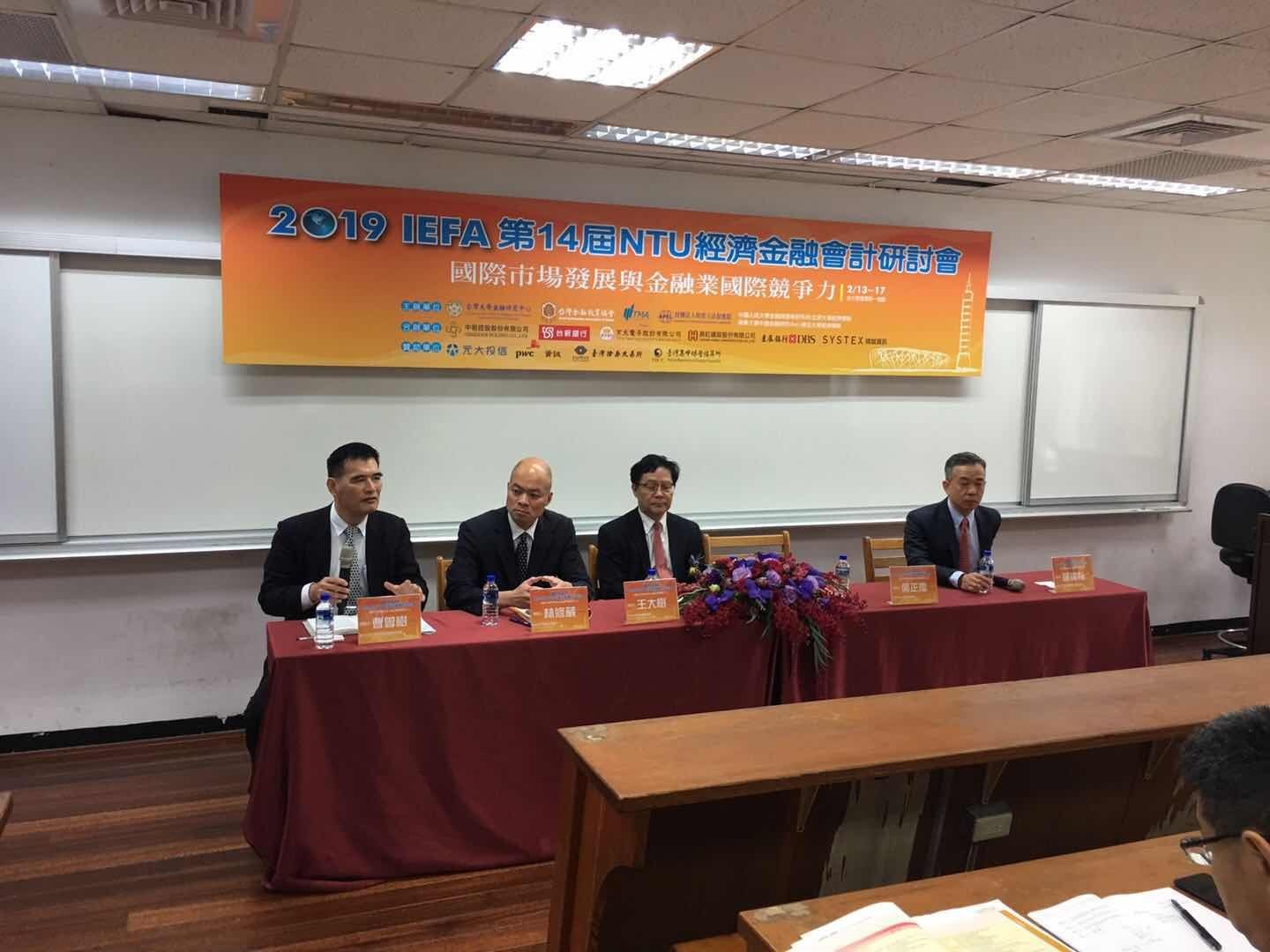 2月14-15日,2019IEFA经济金融会计研讨会在台湾大学管理学院召开,财金学院曹曾树副教授受邀参会。研讨会分为座谈会及学术发表场次,曹曾树担任“中美贸易战下两岸银行业、证券业的发展与挑战”与“金融业国际竞...