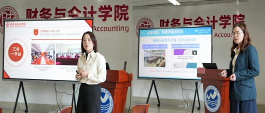 会上,评建办就近期学校审核评估迎评重点工作推进情况进行通报;随后,财务与会计学院、大数据学院分别分享迎评工作经验,从制度设计、部署动员、检查抽查、特色凝练等方面为其他学院提供可借鉴的工作思路和方法。