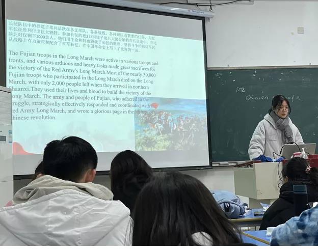 参观结束后,英语系进一步深入开展“三进”实践活动,学生们以小组为单位,从六个主题中选择其一,将相关材料进行整理翻译,运用英文讲述福建红色故事。