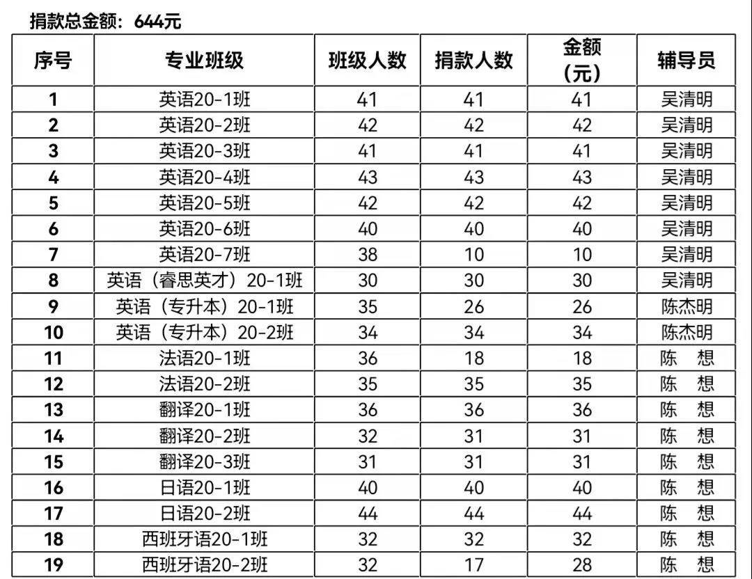外国语学院爱心基金捐款明细