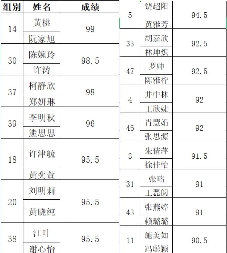 进入决赛名单: