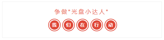 “一粥一饭,当思来之不易;半丝半缕,恒念物力维艰。” “光盘”不仅仅是一句口号,也是一种厉行节约、倡导珍惜的生活态度。从现在做起,从身边做起,从一日三餐做起,珍惜资源,理性消费,做一个光荣的“光盘一族”,共同为建设文明、和谐、环保的社会环境做出自己的贡献。让我们一起来向舌尖上的浪费说“不”。我光盘,我光荣,从我做起,从现在做起。