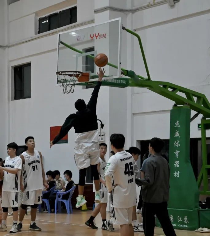 外力四射展现大学风貌,球场张扬尽显风范。飞转的篮球是运动员运动的轨迹,是耐力与意志的检验,男篮秉着挑战自我的目标。奋勇奔跑、跳跃,任汗水流淌湿透球服,可脚步却从不停歇!默契在对抗中提高,友谊在碰撞中升华!