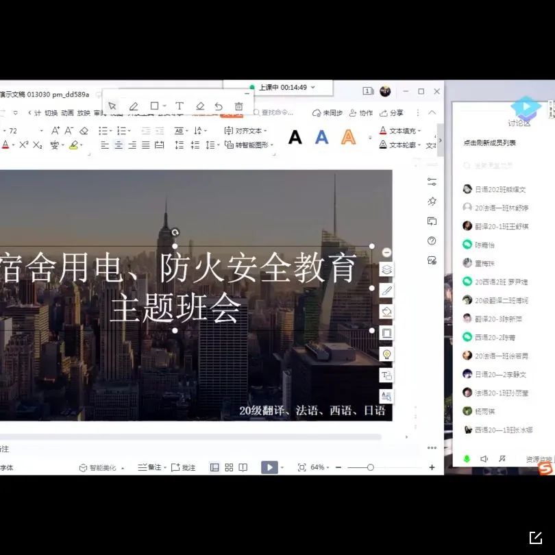 在宿舍安全教育主题班会上,辅导员通过具体案例、图片展示及播放安全教育视频等形式让同学们充分认识宿舍安全的重要性,组织全体学生认真学习了《福州外语外贸学院学生宿舍管理规定》《福州外语外贸学院违纪处分规定》等校规校纪。