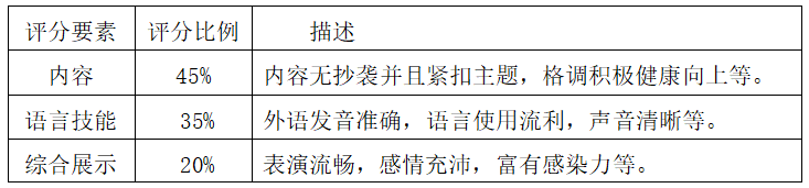 此选拔评审团由外国语学院专任教师组成,评分标准如下: