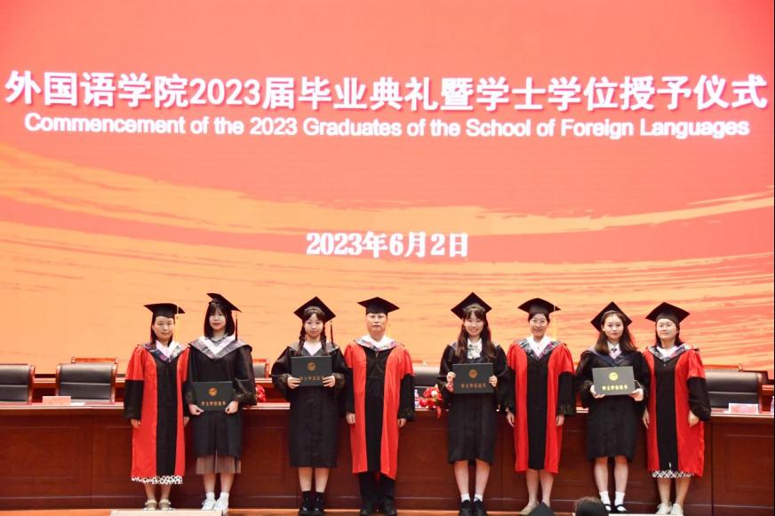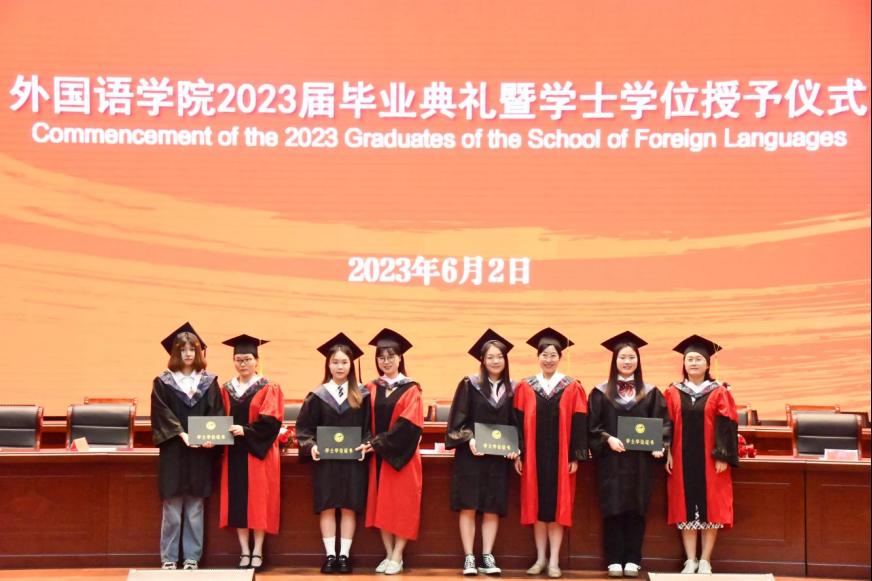 6月2日,外国语学院在博雅音乐厅隆重举行2023届本科毕业生毕业典礼暨学士学位授予仪式。院领导,院学位评定分委员会成员,各系主任、各系教师代表及毕业生辅导员出席典礼,全体2023届本科毕业生参加典礼。