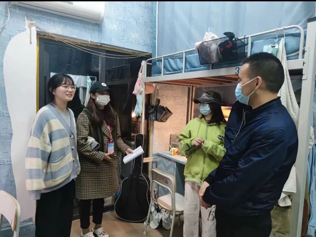 近日,我院分党委书记章仁棠和各专业辅导员们深入学生宿舍,了解疫情期间同学们的线上学习、心理和生活状况,关注学生思想动态,做好心理疏导。