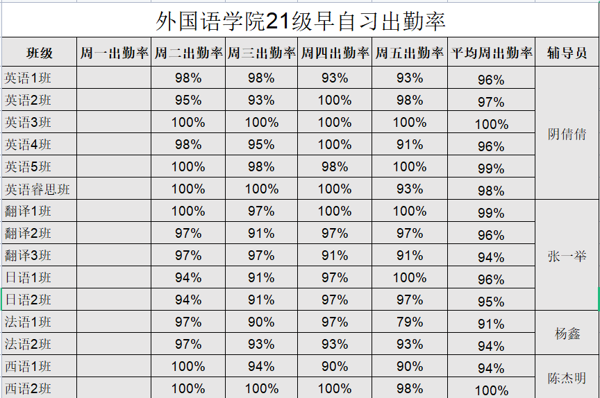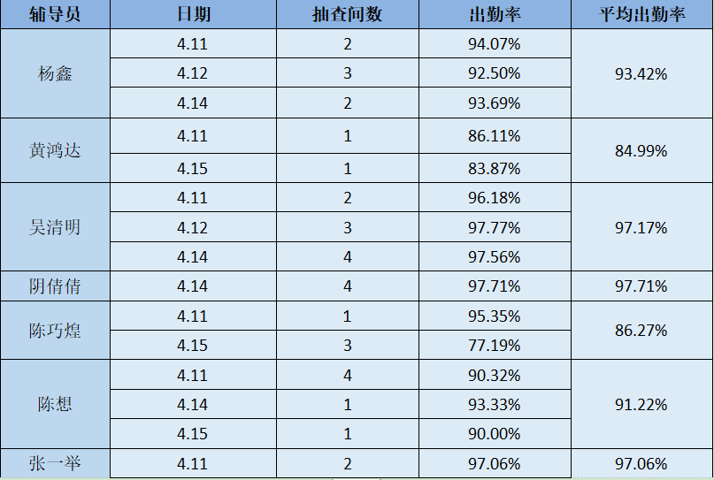 辅导员所带班级出勤情况: