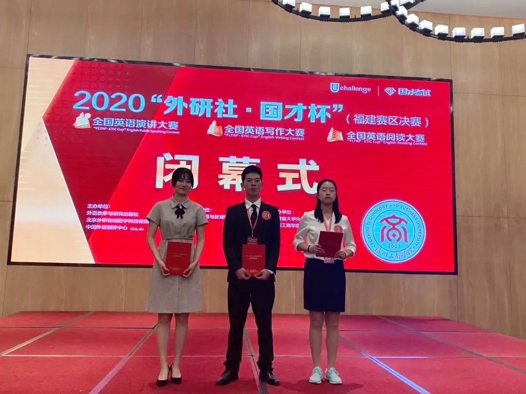 卢戈梓,外语专业学习优秀奖学金;“外研社·国才杯”全国英语写作大赛福建省决赛一等奖;研究生考取海南大学英语笔译专业