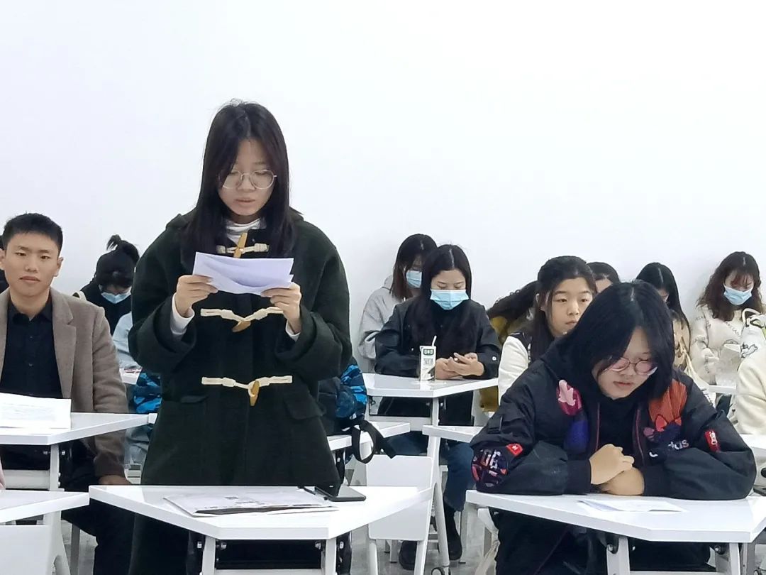 2021年12月8日,外国语学院学生第一党支部在人文楼3-102室举行新一批的预备党员纳新大会。一支部的全体正式党员出席会议,全体预备党员列席会议。会议由学生第一党支部书记陈巧煌主持。