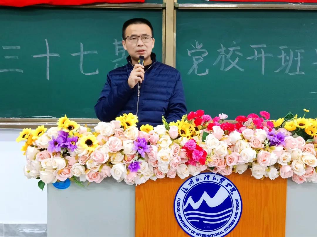 ᰔ2021年12月29日中午,中共福州外语外贸学院外国语学院分党校于人文3-301室隆重举行第三十七期入党积极分子培训班开班典礼。外国语学院分党委书记、分党校校长章仁棠、各学生支部书记、全体辅导员及第三十七期培训班全体学员参加此次开班典礼。